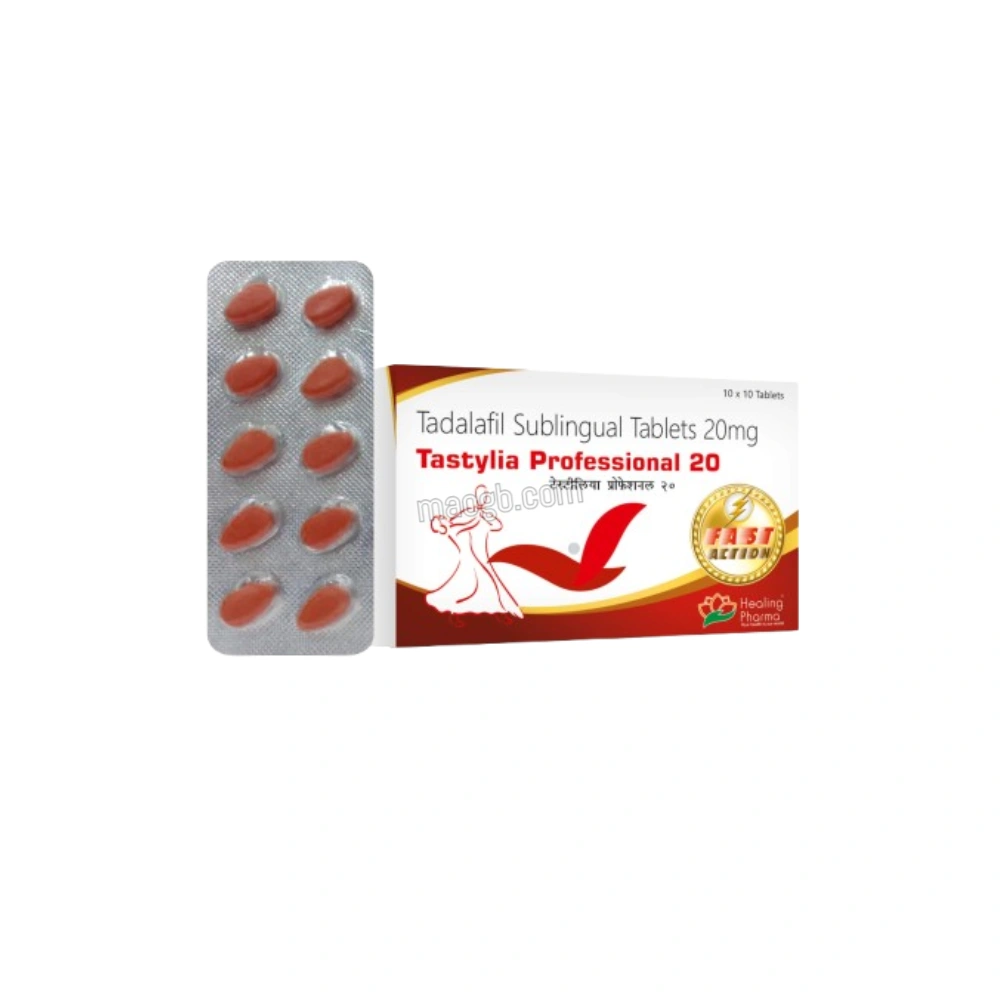 Tastylia Professional is designed as a sublingual tablet, allowing it to dissolve under the tongue for faster absorption. This formulation may offer quicker onset of action compared to conventional tablets, making it a convenient option for planned intimacy.