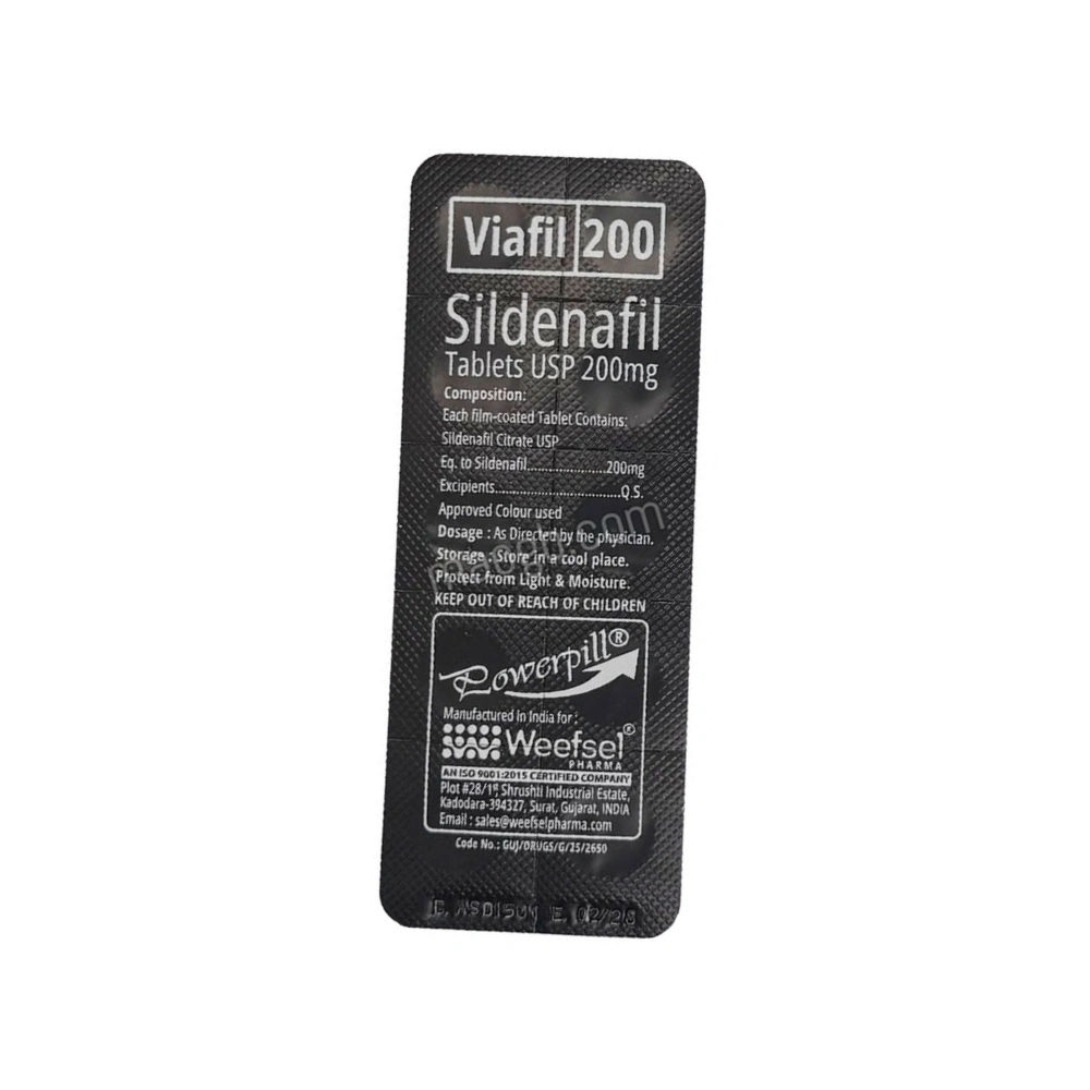 Viafil 200mg Sildenafil Tablets are a high-potency oral medication formulated to help men manage erectile dysfunction effectively. Containing sildenafil citrate, this medicine belongs to the phosphodiesterase type 5 inhibitor class, designed to enhance blood flow to the penile tissues during sexual stimulation.