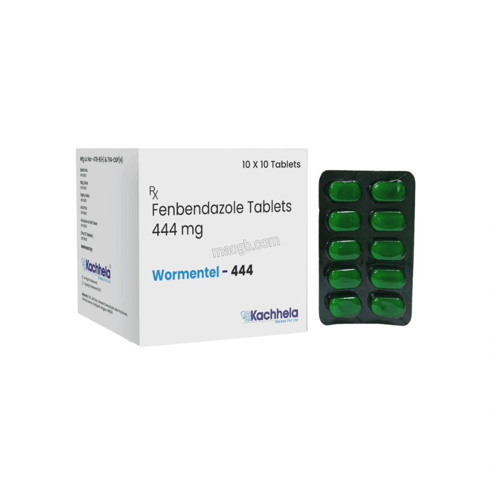 Wormentel 444mg Fenbendazole Tablets is a high-strength antiparasitic medication formulated to treat intestinal worm infections in animals. It contains fenbendazole, a benzimidazole-class anthelmintic widely used in veterinary medicine. This formulation is designed for effective parasite control under professional supervision.